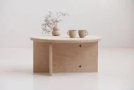 Sakin ve heykelsi duruşuyla yaşam alanınıza huzur katacak bu alçak yuvarlak orta sehpa, Baltık huş kontrplaktan tamamen el işçiliğiyle üretilmiştir. Minimalist tasarımı ve çapraz ayak sistemi sayesinde hem sağlam hem de zarif bir görünüme sahiptir. Japandi ve Mid-Century modern tarzlarının yalın estetiğini bir arada sunarak salonlarınıza dinginlik katar.